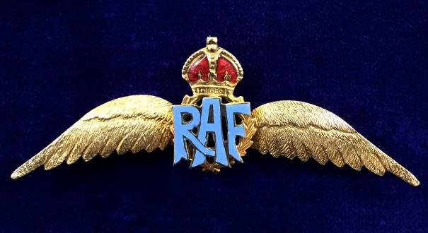 WW2 Royal Air Force Pilot's Wing Gold & Enamel RAF Sweetheart Brooch by Thomas Lynton Mott.