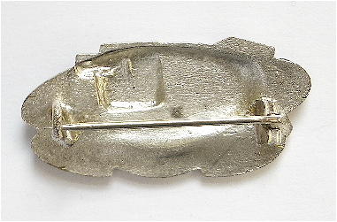 A very rare First World War silver plated example with blue and green enamel. Excellent condition, original pin fittings, no damage to the enamel.. Width 36mm. Height 17mm.