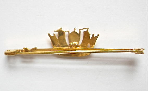 An exceptionally fine quality Second World War naval crown brooch, bearing Chester 9 carat gold hallmarks for 1944 and maker's details "C.H" (Charles Horner). Very good condition, original pin fittings.