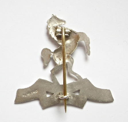 An excellent example of a large First World War Royal West Kent silver and enamel sweetheart brooch, the reverse impressed "Sterling". Very good condition, original pin fittings, no damage to the enamel.