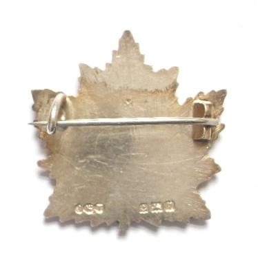 A scarce First World War Canadian Expeditionary Force sweetheart brooch, the reverse bearing Birmingham silver hallmarks for 1915 and maker's details "J W T" (J W Tiptaft & Son Ltd Birmingham) . Very good condition.