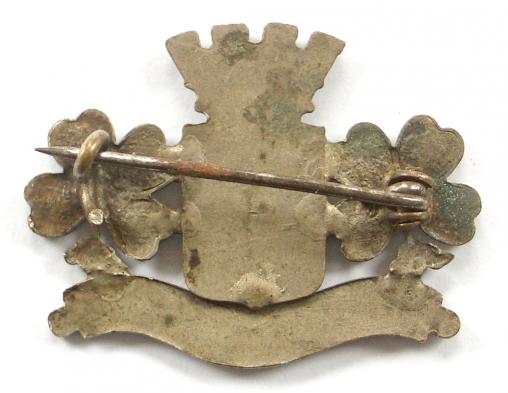 A scarce First World War period 'Battle of Arras' battle brooch, bearing silver plated 'Arras town crest' flanked by lucky 'four leaf clovers' and complete with 'Arras' title scroll below. Good condition, retaining original pin fittings (steel pin now with rust).