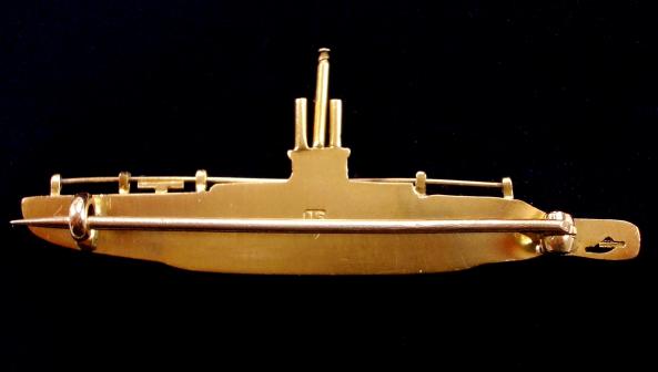 Submarine Service 15 carat Gold Miniature Submarine Boat Brooch.