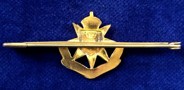 A perfect example of an original Second World War period 'East Surrey Regiment sweetheart brooch come tiepin'; gilded brass example following the lines of the regiments cap badge, enhanced with red and blue enamelling and mounted on a slender bar. Very good condition, retaining original pin fittings, enamel perfect, gilt finish remains bright.