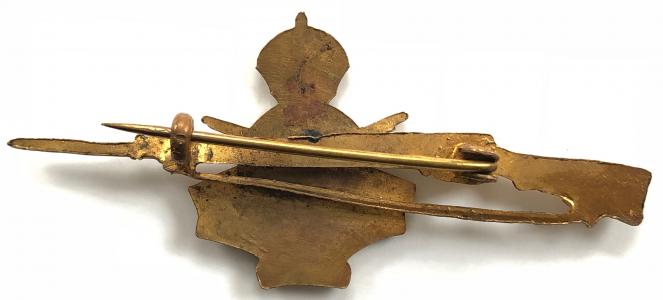 WWI Army Cyclist Corps Gilt and Enamel Rifle Sweetheart Brooch.
